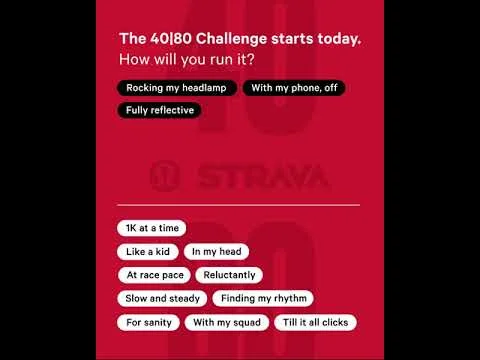 The 40|80 Challenge is a Strava Run Challenge that you can run away way you want. You just have to run a total of 40 or 80km.